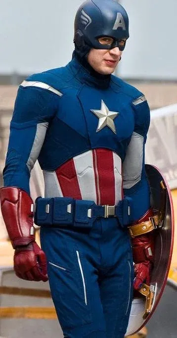 Getting back specifically to the blacking out of the good old red, white, and blue of Americana, you see this police-ification also in the evolution of Captain America's uniform in the MCU. In the first CA movie, Cap wears a bright blue costume, with audacious red and white trim.